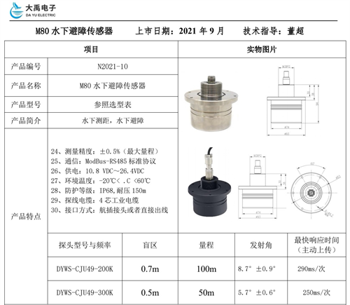 大禹電子M80水下避障傳感器用于污泥沉淀池清淤機器人避障
